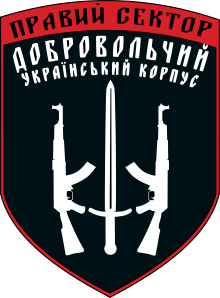 The Ukrainian Volunteer Corps (Добровольчий український корпус) is a (Pro-Ukraine) Volunteer Battalion of the Right Sector political movement, Right Sector leader Dmytro Yarosh later left Right Sector and the Corps, and formed the Ukrainian Volunteer Army to replace it, elements still aligned with Right Sector remained as the Volunteer Corps.