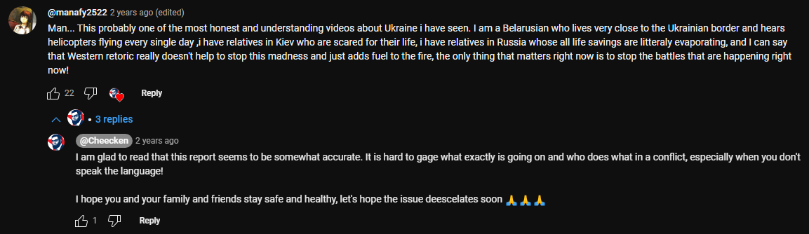 Judging by the response we got, our Ukraine Narratives project was a success, commenters from around the conflict zone, those with families in Russia, Ukraine and Belarus, alongside general audiences, praised us for our “measured critique and analysis” and “complex conclusions”, and for being “honest and understanding”, safe to say it’s a production to be proud of.