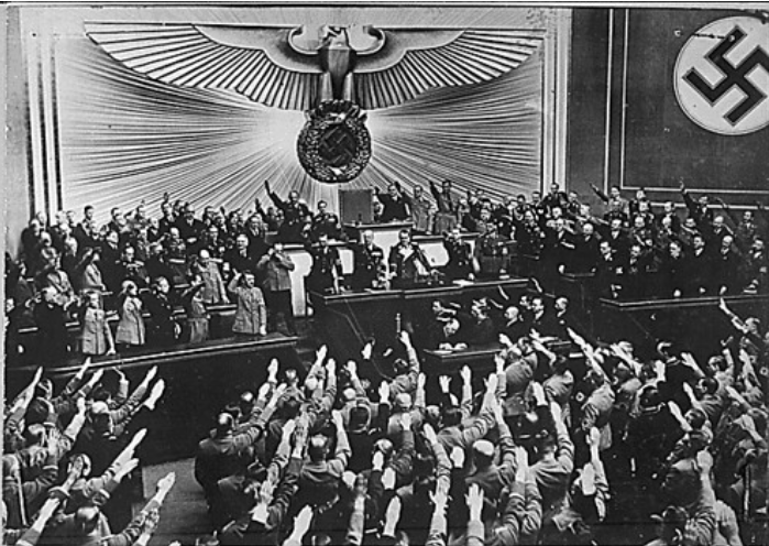 A decade later, in the late 1930s, Germany had recovered from the humiliation of defeat and came under the leadership of Fascist dictator Adolf Hitler, who formed alliances and rearmed his country. Germany’s resurgence caused Europe to split once again into two factions, one led by France and the UK, the other led by Germany, the Allies and Axis.