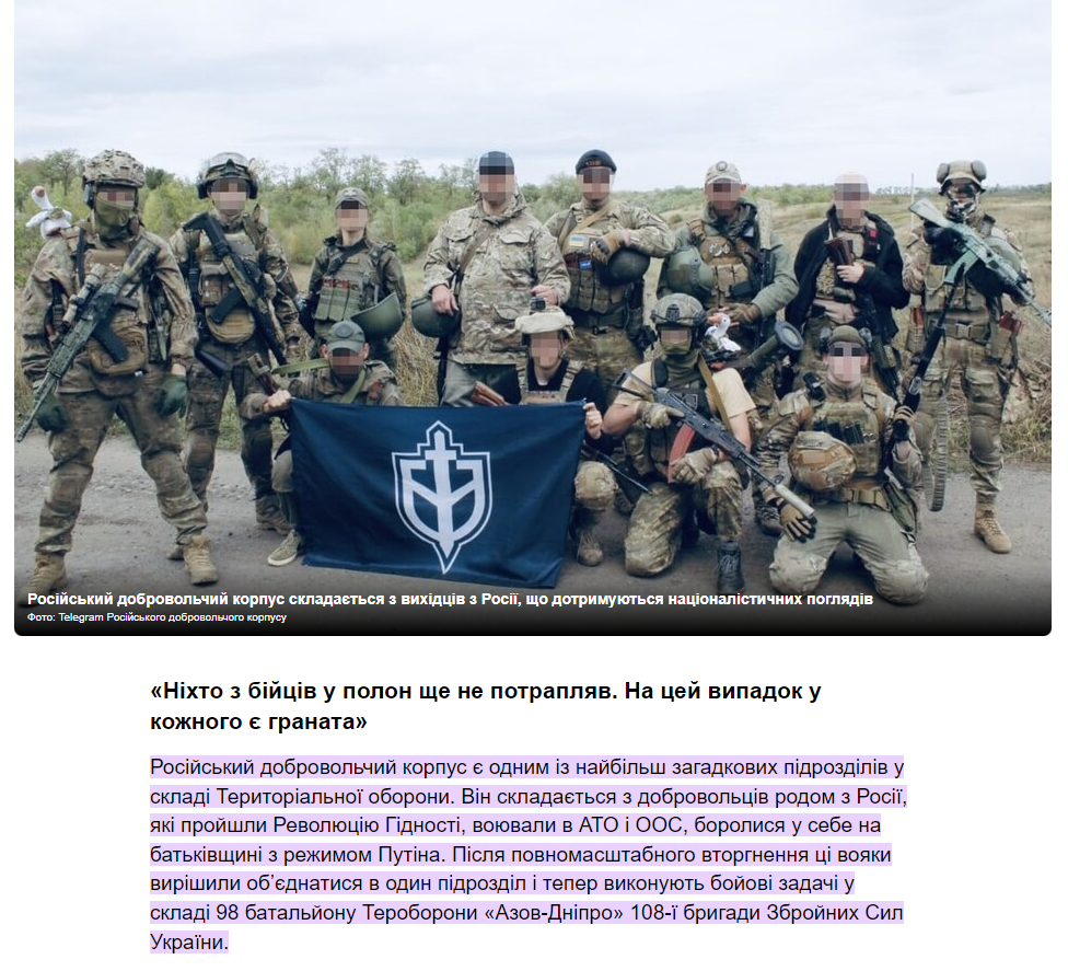 But that’s not all, after doing some further digging we found that Azov-Dnipro is also affiliated with yet another group, the Russian Volunteer Corps.
