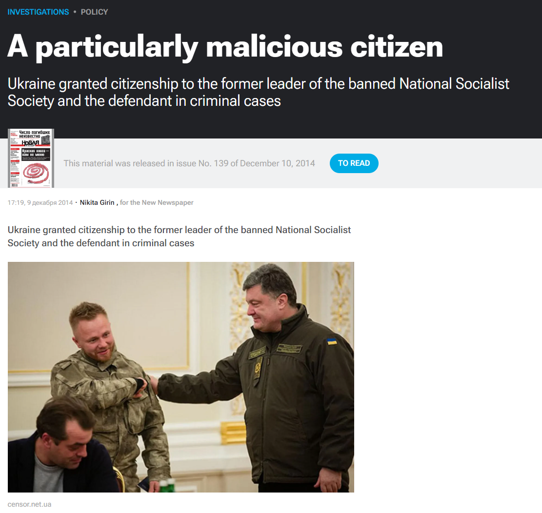 Their ties to the National Corps come from Batulin’s association with a prominent National Corps figure, Sergei Korotkikh, Korotkikh is a Belarussian national who moved to Russia in the early 2000s, starting up an organisation called the “National Socialist Society” or “NSO”, the NSO was banned in Russia in 2011 after members of its northern branch were found guilty of carrying out 28 racially motivated murders in Moscow. After the NSO’s ban, Korotkikh left Russia for Ukraine, joining the National Corps.