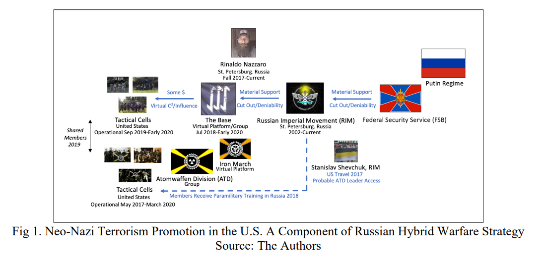 Based on this, the report goes even further to claim that the Russian government, or the “Putin regime” as the report calls it, is using groups like The Base as part of its campaign to destabilise the US, by condoning the Russian Imperial Movement and its connections, the Russian State essentially accommodates its organising of Neo Nazi terror in the West.