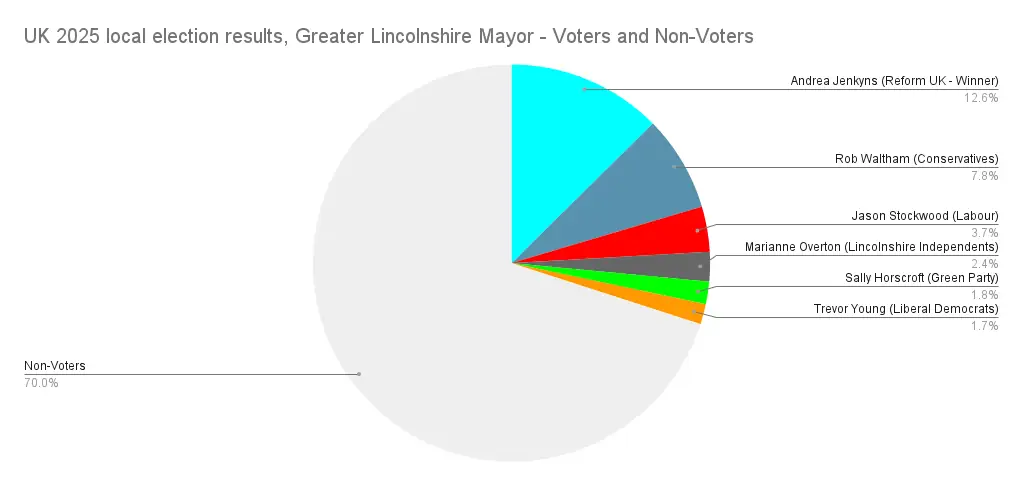 In these a pattern emerged, the upstart far-right Reform UK party actually took second place in all of these contests, then in the last 2 Mayoralities, Greater Lincolnshire and Hull & East Yorkshire, they actually won.