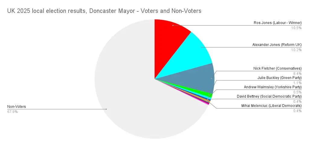 With these takeaways I became a lot more interested in these elections and decided to get back to whacking out the graphs, every Mayor, each council, and an overall votes/seats set for the councils like the ones I do for the general elections.