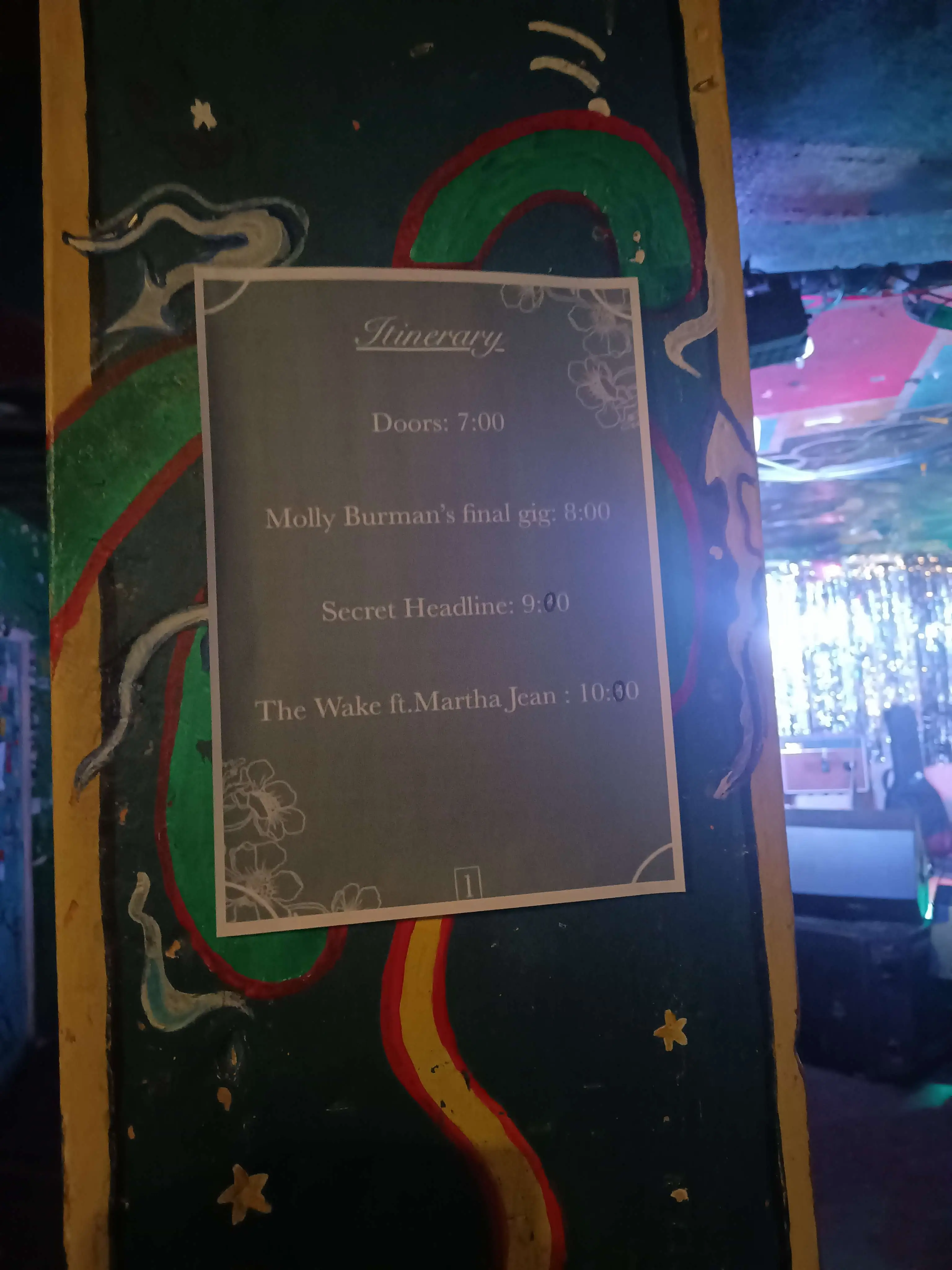 From the ashes of Molly Burman the solo artist came a new band, Molly and the Dolly Shop, in all their glamour, and I got to take home a wonderfully drawn funeral pamphlet made by Willow. (See what I mean? multifaceted!)