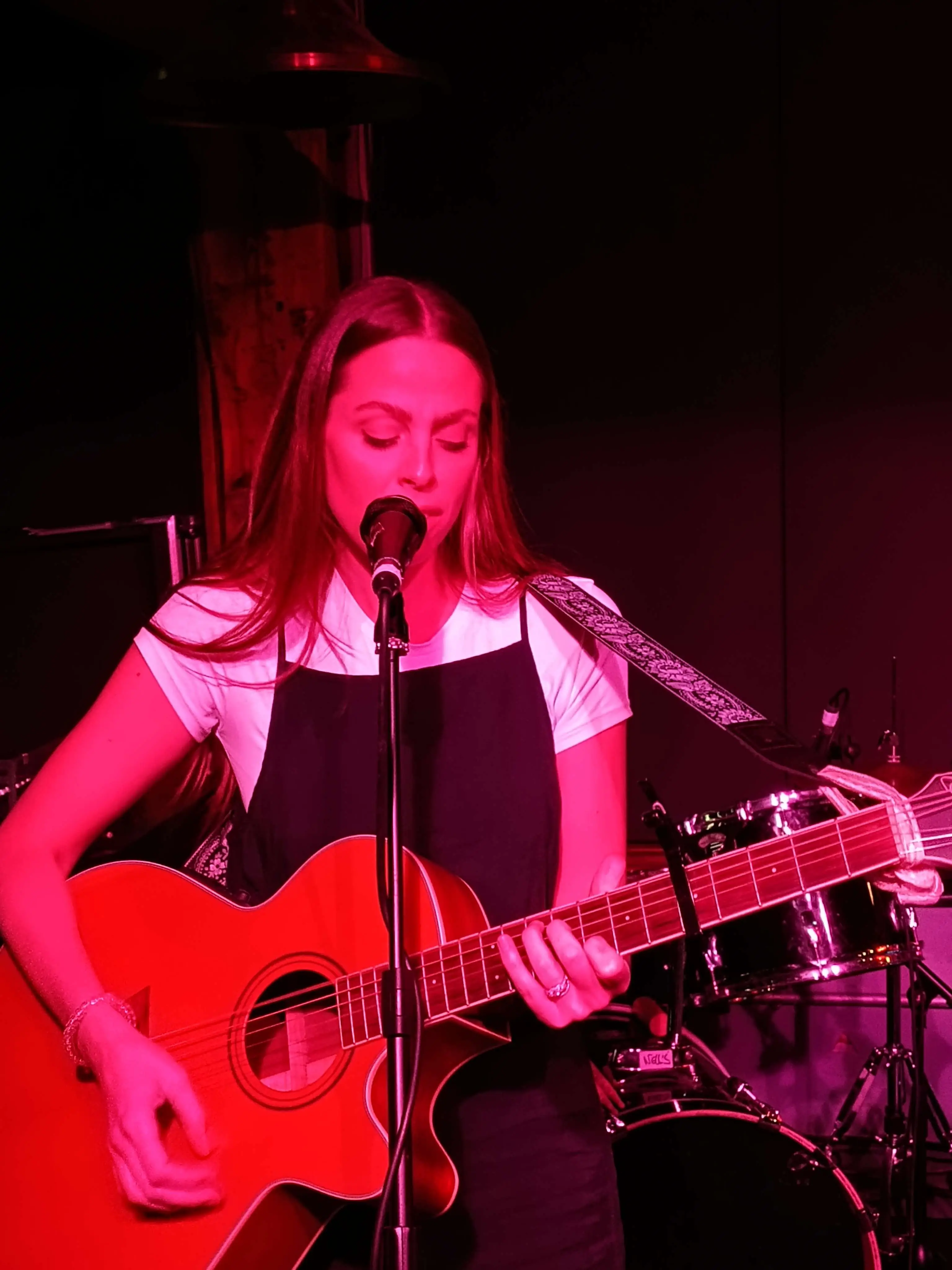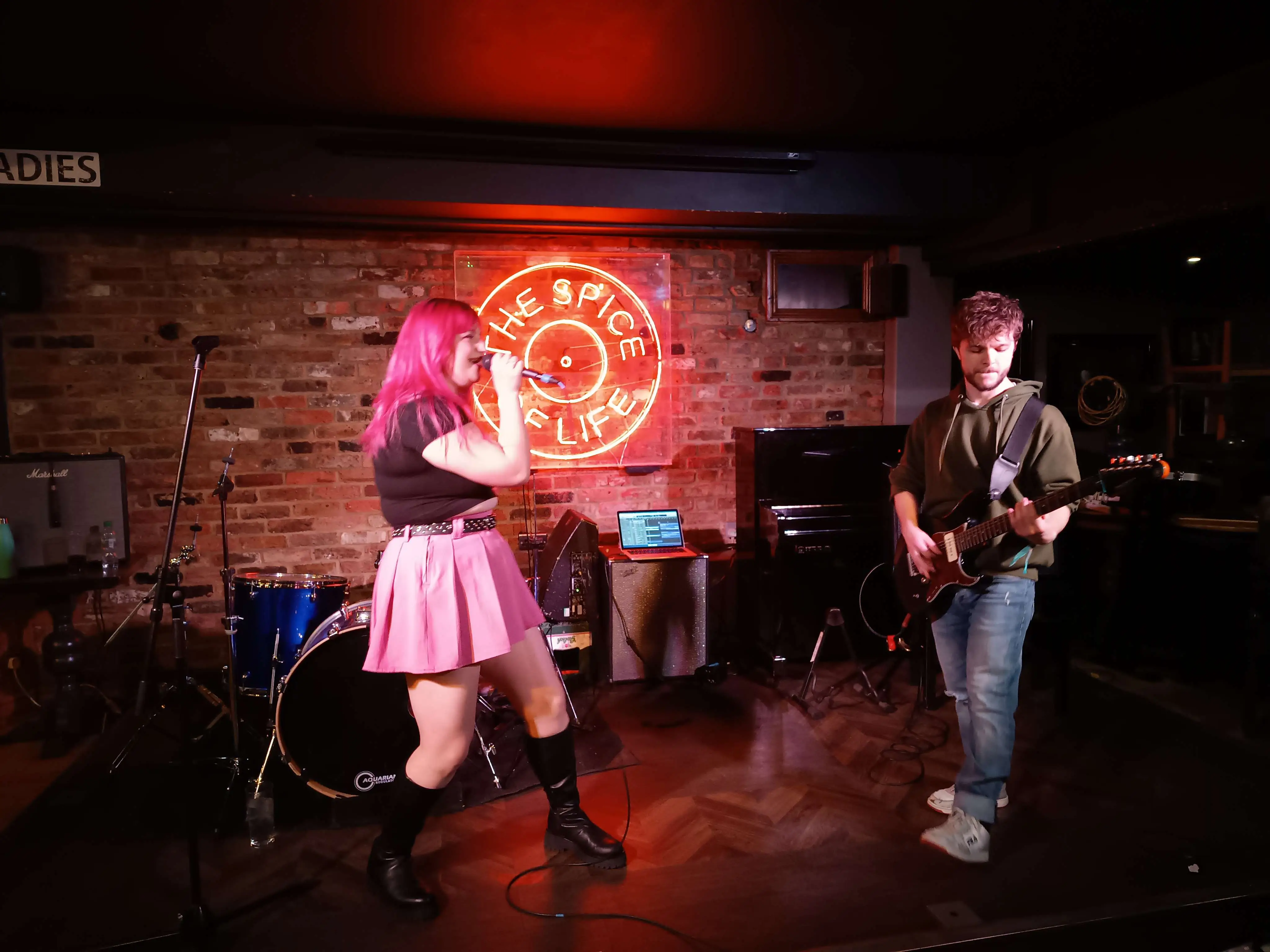Hiccup is a duo of Jess on the vocals and Lewis on the guitar, supporting by a backing mix, they were on first and were setting up as I made my way in, and they told me that this was actually their first ever gig, the band and its early songs had been months in the works but they’d never been played to a live audience before, as well as the usual array of punters they had some friends and family along but it turned out I was their first organic audience member, no pressure then!