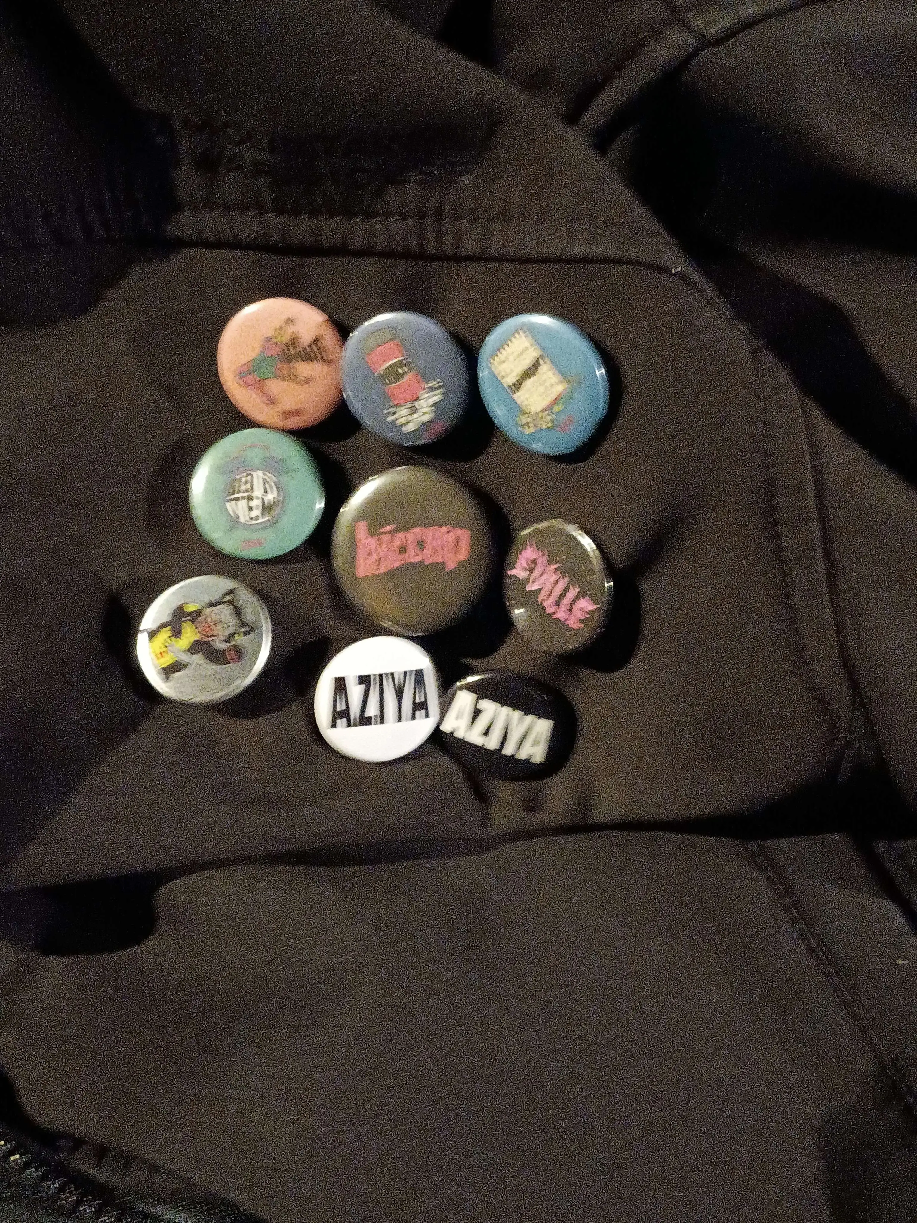 I’ve also gotten an ever expanding collection of gig memorabilia and mementos. There’s more merch, alongside extra vinyls I got several dog tags and a necklace from Eville, 2 zines (the Aziya one and a RAGE themed one from The Elegists that I bought a month after their show), pictures (also from Eville and another bunch of rock and roll artist Laurie Wright).