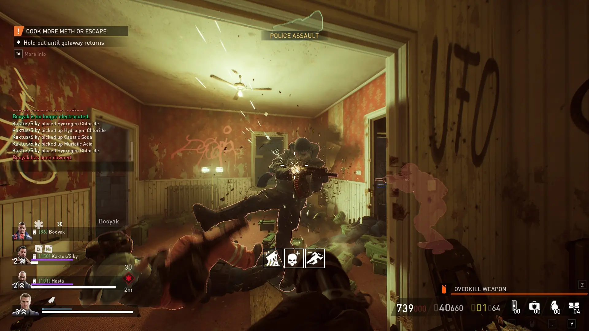The other big new overhaul was a new multiplayer mode, Rockay Rumble. Rockay Rumble is a survival mode, you’re plopped into 1 relatively small map and have to fight off 15 waves of goons, starting with basic melee gangsters then escalating to gun toting gangsters, cops, SWAT officers and Scouts and then Cagnali’s PMC goons, with boss rounds every few waves.
