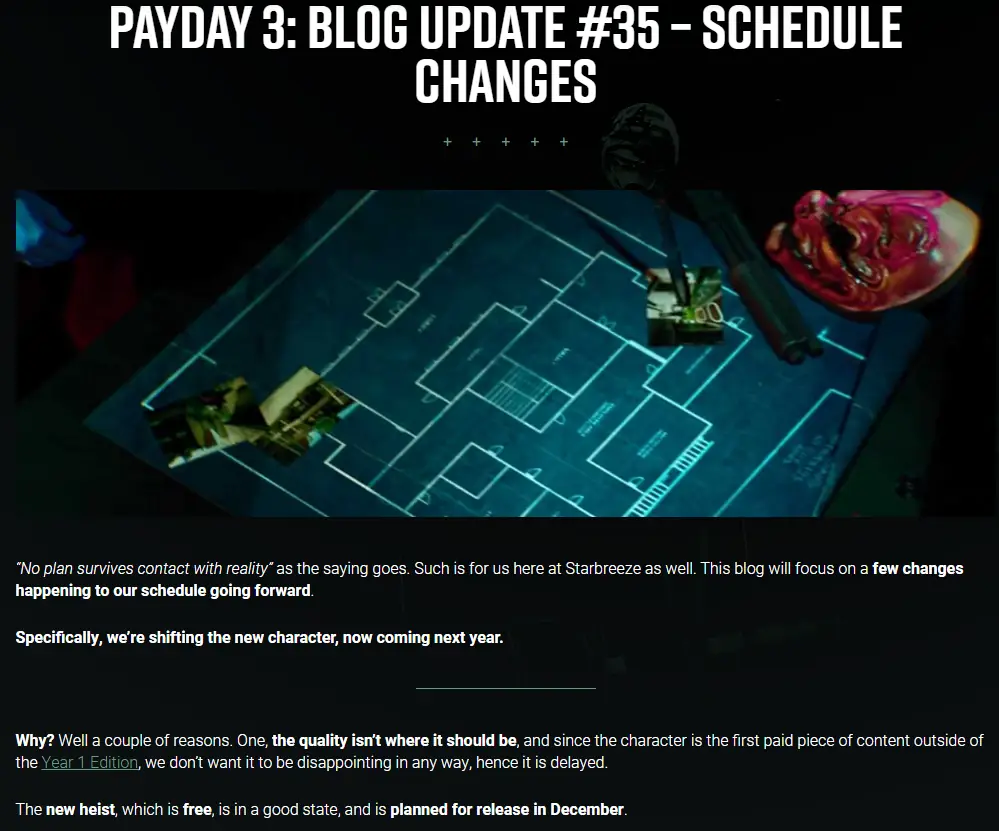 Starbreeze report (pages 4-5 and 19), PAYDAY 3: Blog Update 35